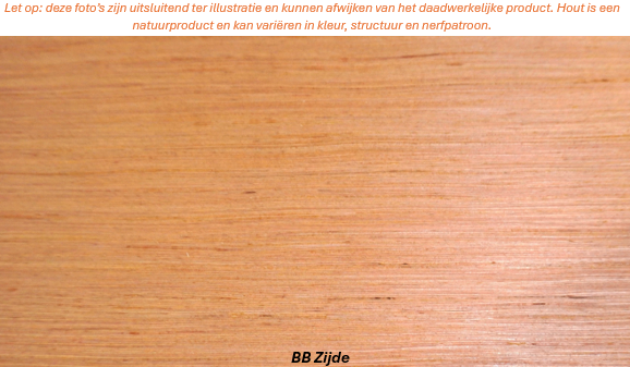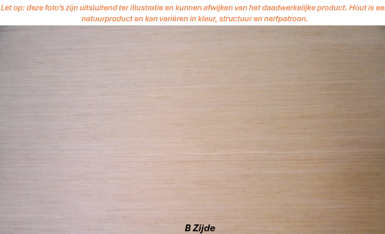 B (voorzijde) dekfineer ongevoegd, kleine gezonde pitkwasten toegestaan.
