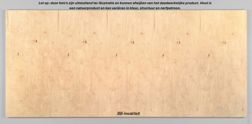 Sterkte en stabiliteit: Door de gelaagde opbouw en het kruisen van de vezelrichting van het hout, biedt berken multiplex een hoge sterkte en stabiliteit. Het is minder gevoelig voor kromtrekken en barsten dan massief hout.