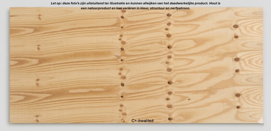 C+ : eventuele toegestane gebreken zoals open kwasten zijn met vloeibaar hout gerepareerd