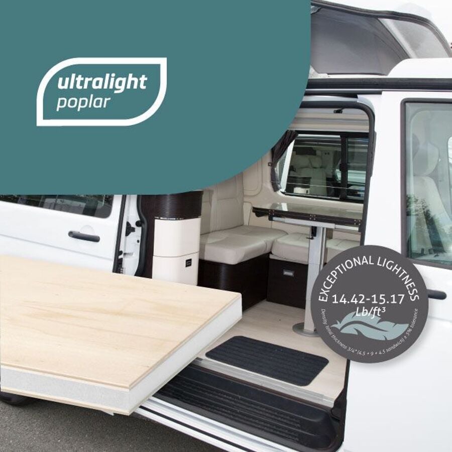 Ultralicht sandwichpaneel met isolerende XPS-kern en 100% Europees populieren multiplex. De dekfineren zijn geschikt voor schilderwerk of bekleding. Combinatie van lichtgewicht, stabiliteit, goede bewerkbaarheid en isolatie maakt het ideaal voor mobiliteit, interieur en buitentoepassingen.